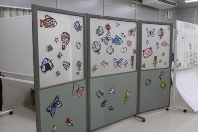 ステンドグラス風工作では、今年度のテーマである「I am me, You are you~いつでも自分らしく~」を表現したカラフルで元気の出る作品を一人一人がつくりました。