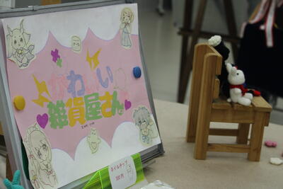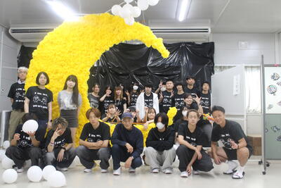 フォトスポットでは、三日月の展示とステンドグラス風工作の展示を行いました。三日月を固定する方法で頭を悩ませたり、一生懸命貼った花が次の日には8割以上剥がれ落ちていて絶望を感じたりしましたが、全員ができることを探して知恵を出し合い、すばらしい作品が完成しました。